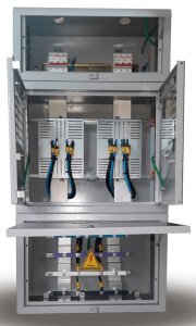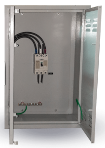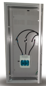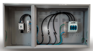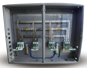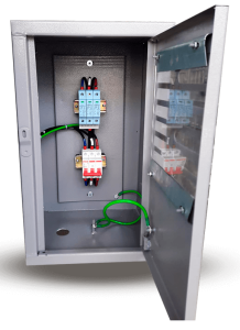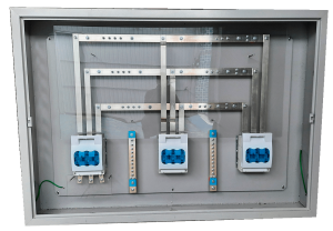 Caixa tipo “D”, com placa de montagem. Caixa para equipotencialização com DPS (Dispositivo de Proteção contra Surtos Elétricos).
